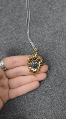 - Design Symbolique : Le pendentif combine le symbole solaire, universel de puissance et de vitalité, avec l’œil omniscient, gardien et protecteur.