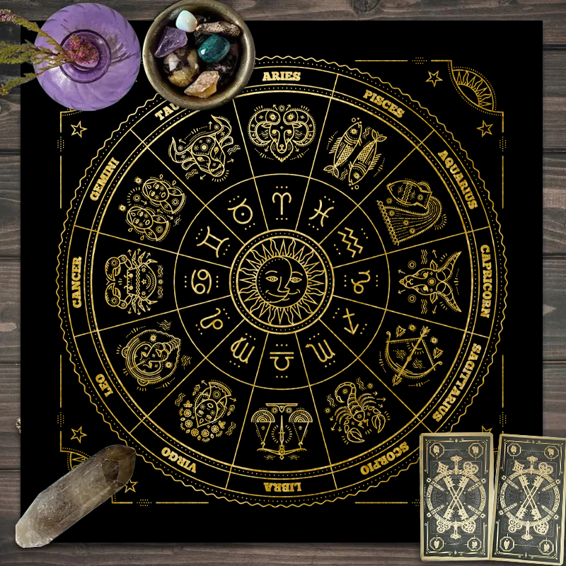 Prêt à élever votre pratique ? Ajoutez cette nappe zodiacale à votre panier dès maintenant et laissez les étoiles guider vos tirages !
