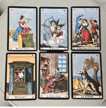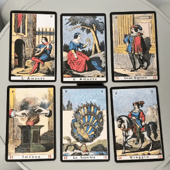 • 52 cartes au design exquis : Inspirées par les traditions italiennes et l’esprit de Madame Lenormand, célèbre cartomancienne, ces cartes allient beauté artistique et profondeur symbolique. Chaque illustration raconte une histoire et offre une guidance unique.