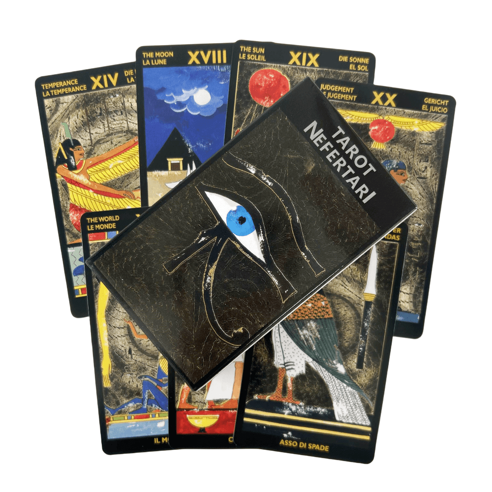 Découvrez le Tarot de Néfertari, un oracle exceptionnel de 78 cartes inspiré par la grandeur mystique de l’Égypte des pharaons et l’aura envoûtante de la reine Néfertari, épouse bien-aimée de Ramsès II. Bien plus qu’un simple jeu de divination, ce tarot est une invitation à explorer les symboles sacrés, les récits mythologiques et la sagesse intemporelle de l’une des civilisations les plus fascinantes de l’histoire.