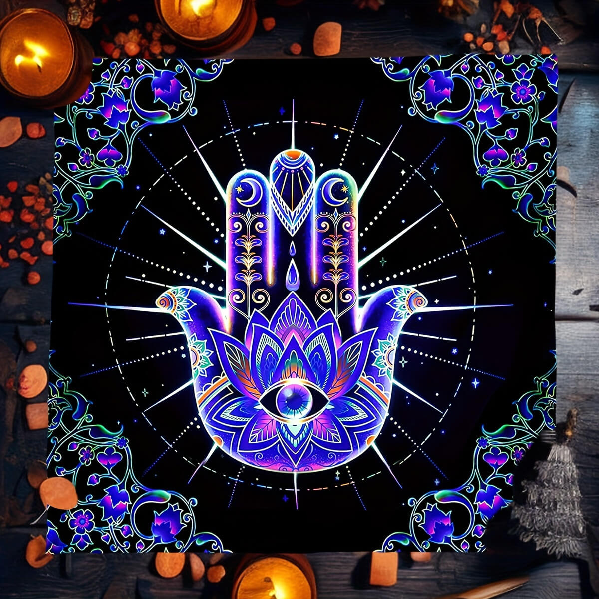 VIKAMA – Nappe Mystique Œil qui Voit Tout & Empreintes de Mains – Lotus Bleu Violet – Imperméable – Méditation & Style Bohème